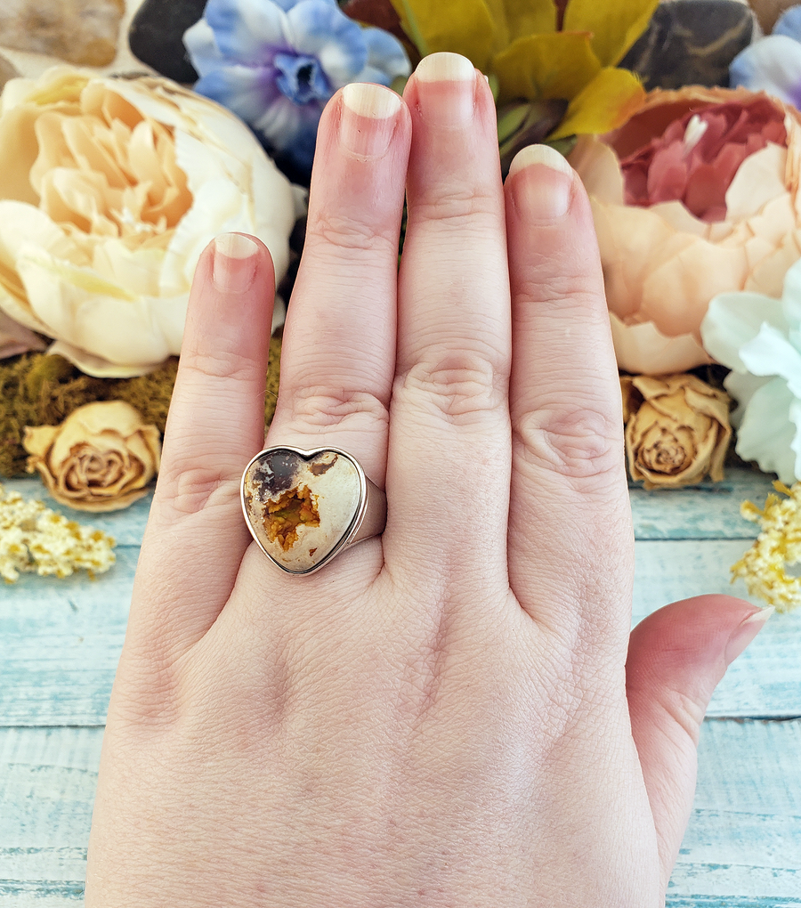 Mexican Opal Sterling Silver Boulder Ring - Myorka - Fire Opal Heart Shaped Ring
