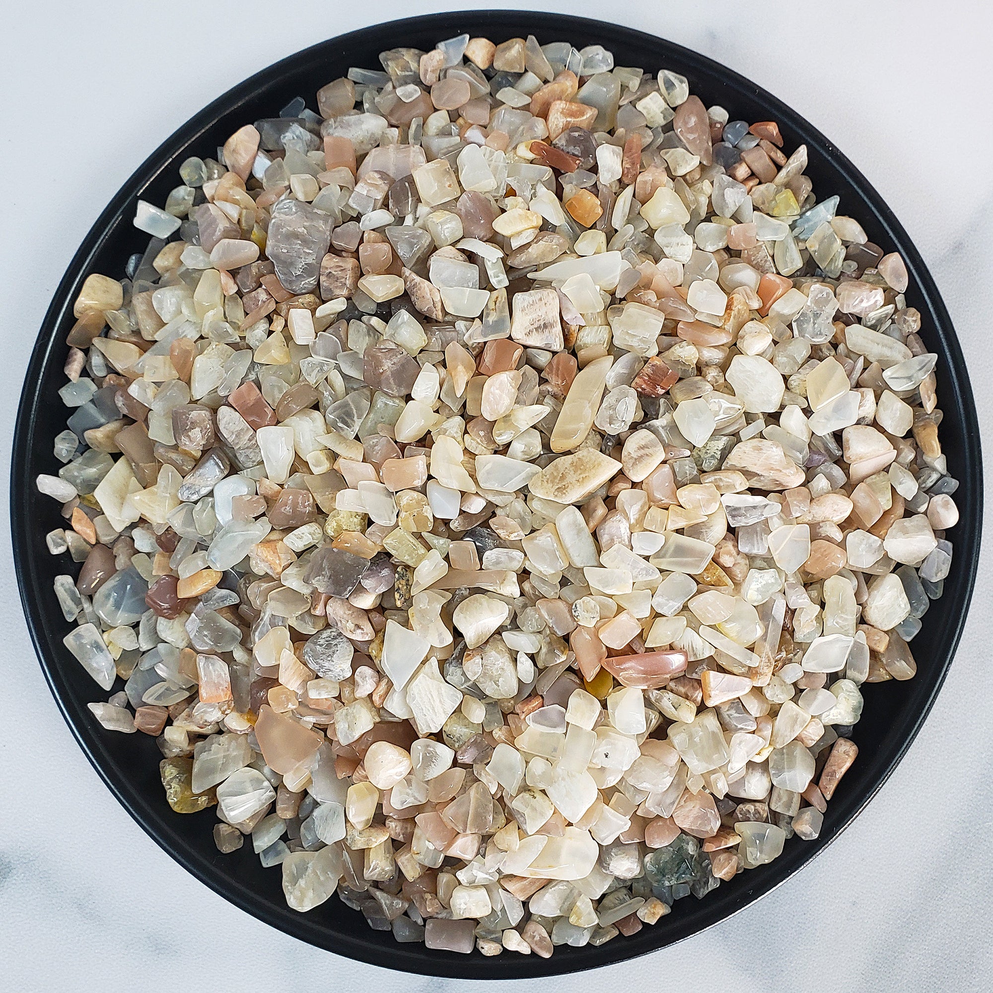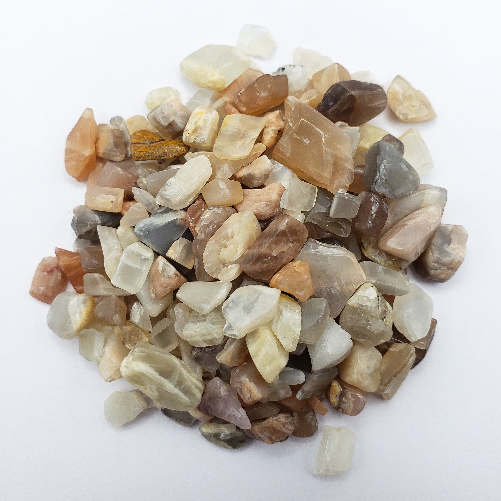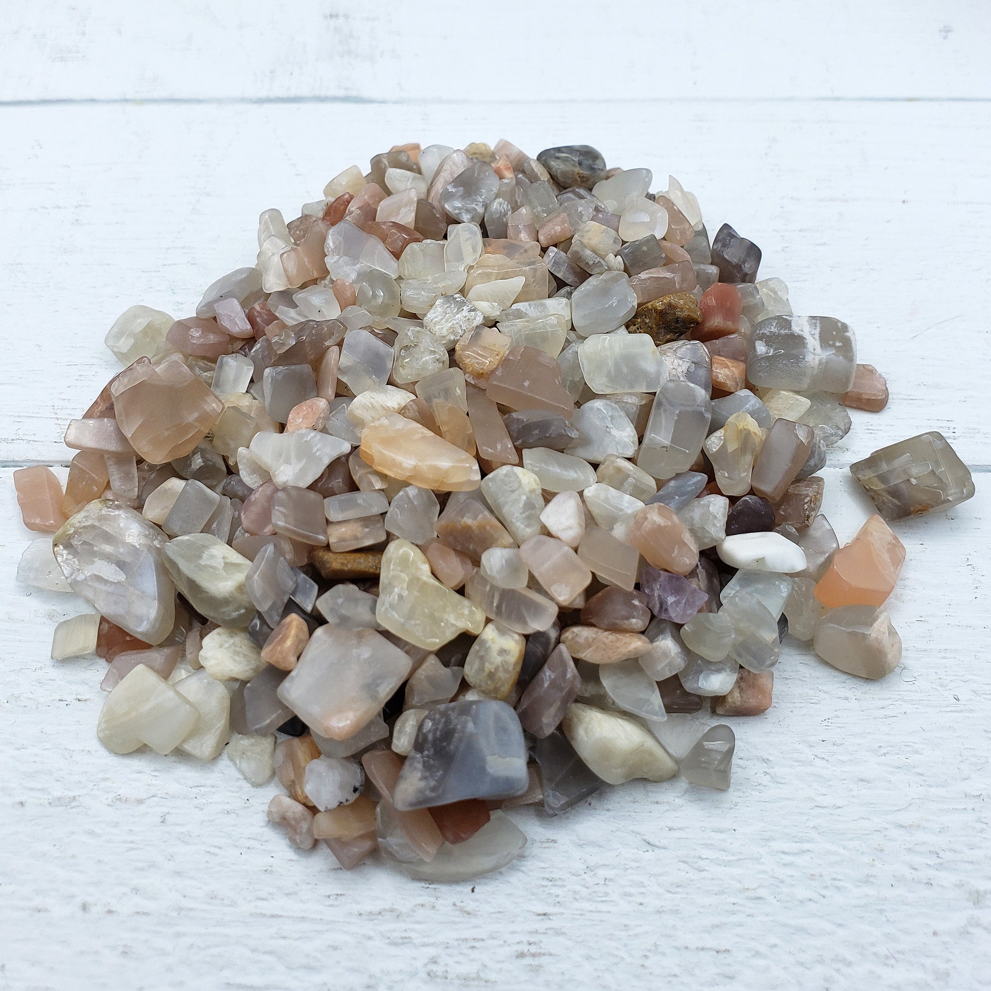 Multi Moonstone Crystal Natural Rough Gemstone Chips By the Ounce | Peach Moonstone, Black Moonstone, & White Moonstone Mix