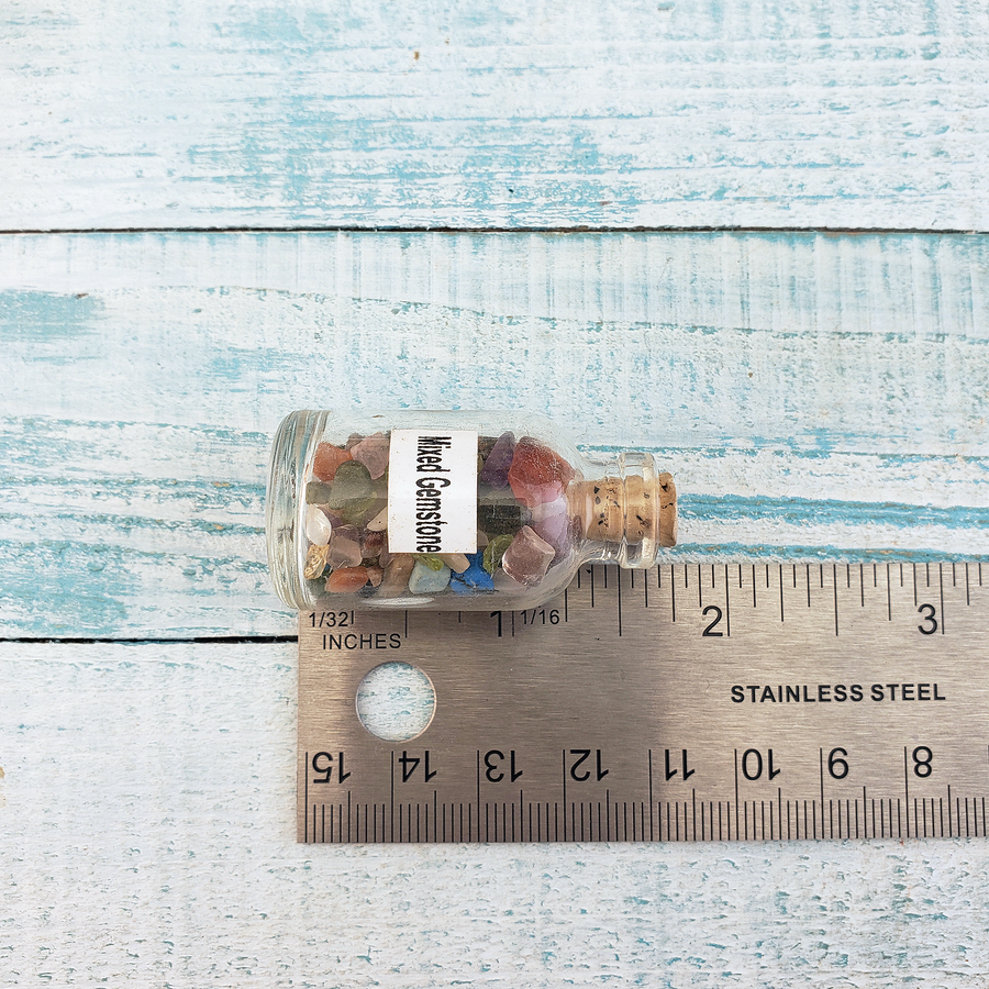 Rainbow Mixed Gemstone Crystal Chips in Glass Bottle