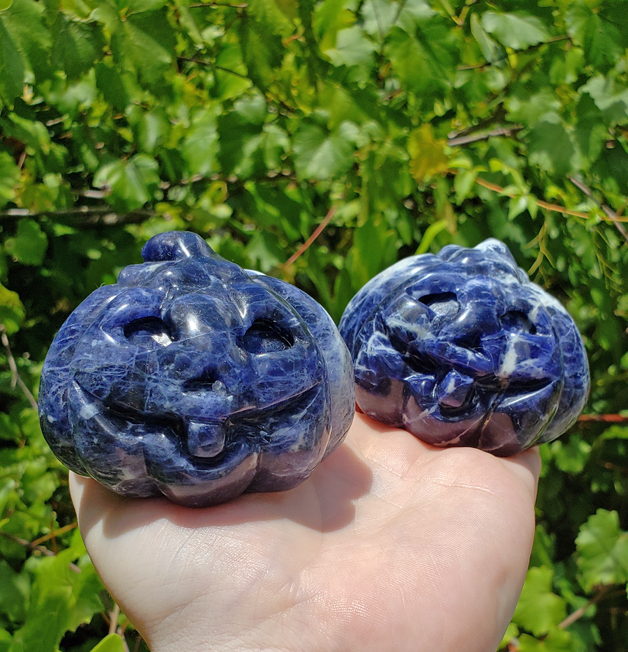 Sodalite Natural Gemstone Happy Pumpkin Totem Jack-o-Lantern Carving - Large