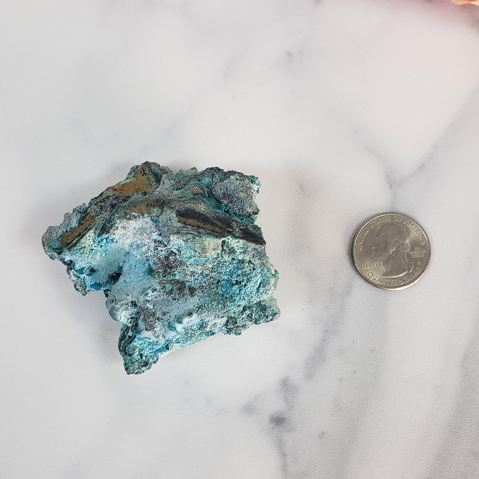 You will receive the exact Chrysocolla cluster pictured, measuring approximately 2.5 inches long, 2.5 inch wide, and 1.8 inch thick.